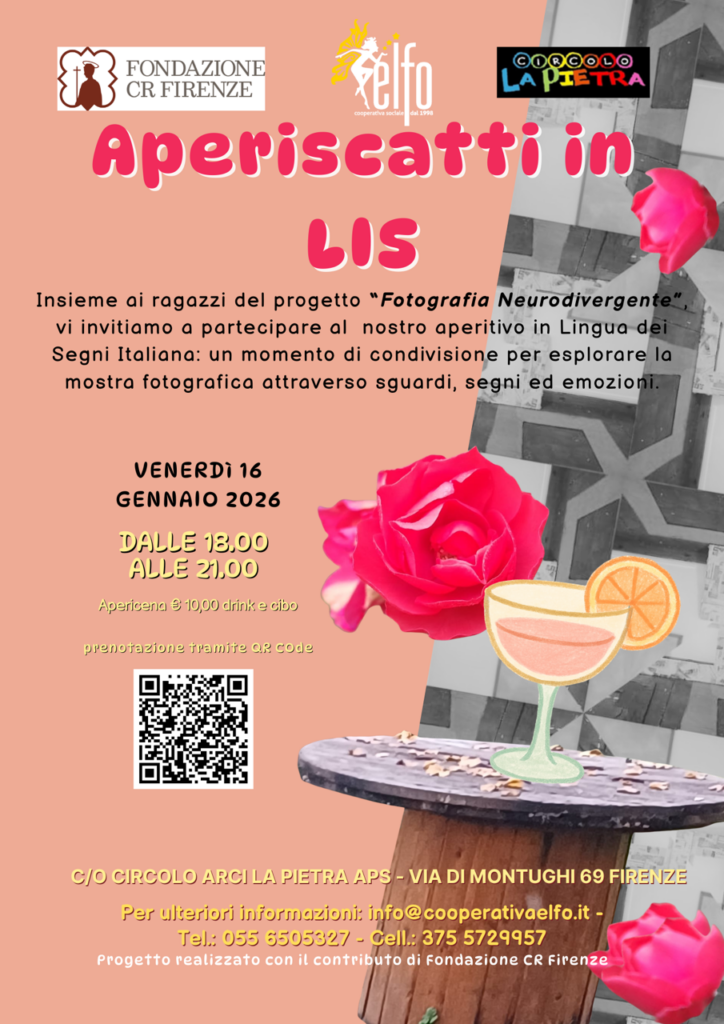 Siamo felici di annunciare la ripresa dei nostri AperiLIS: momenti informali e inclusivi, pensati per creare incontro tra persone sorde e udenti e per promuovere una cultura della comunicazione davvero accessibile. Venerdì 16 gennaio 2026 vi aspettiamo al Circolo ARCI La Pietra (Firenze) per “Aperiscatti in LIS”, un aperitivo in Lingua dei Segni Italiana nato […]
